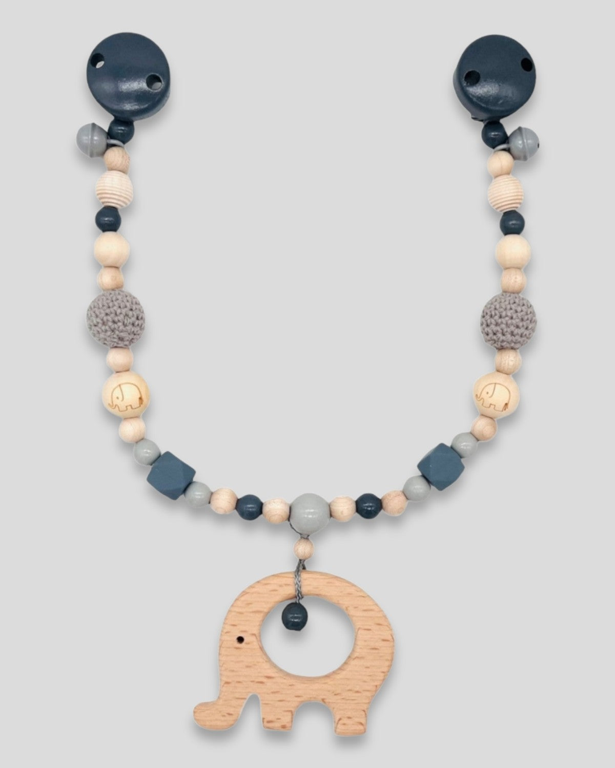 Kinderwagenkette ohne Namen Elefant Natur hell Grau dunkel Grau Holz Beissring|kreativcathi