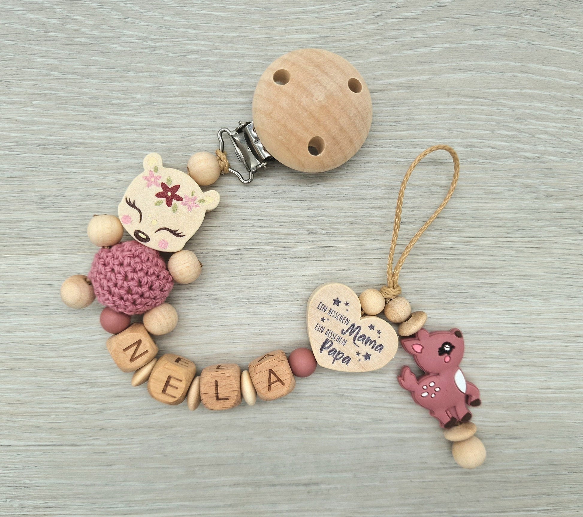 Schnullerkette mit Namen Reh